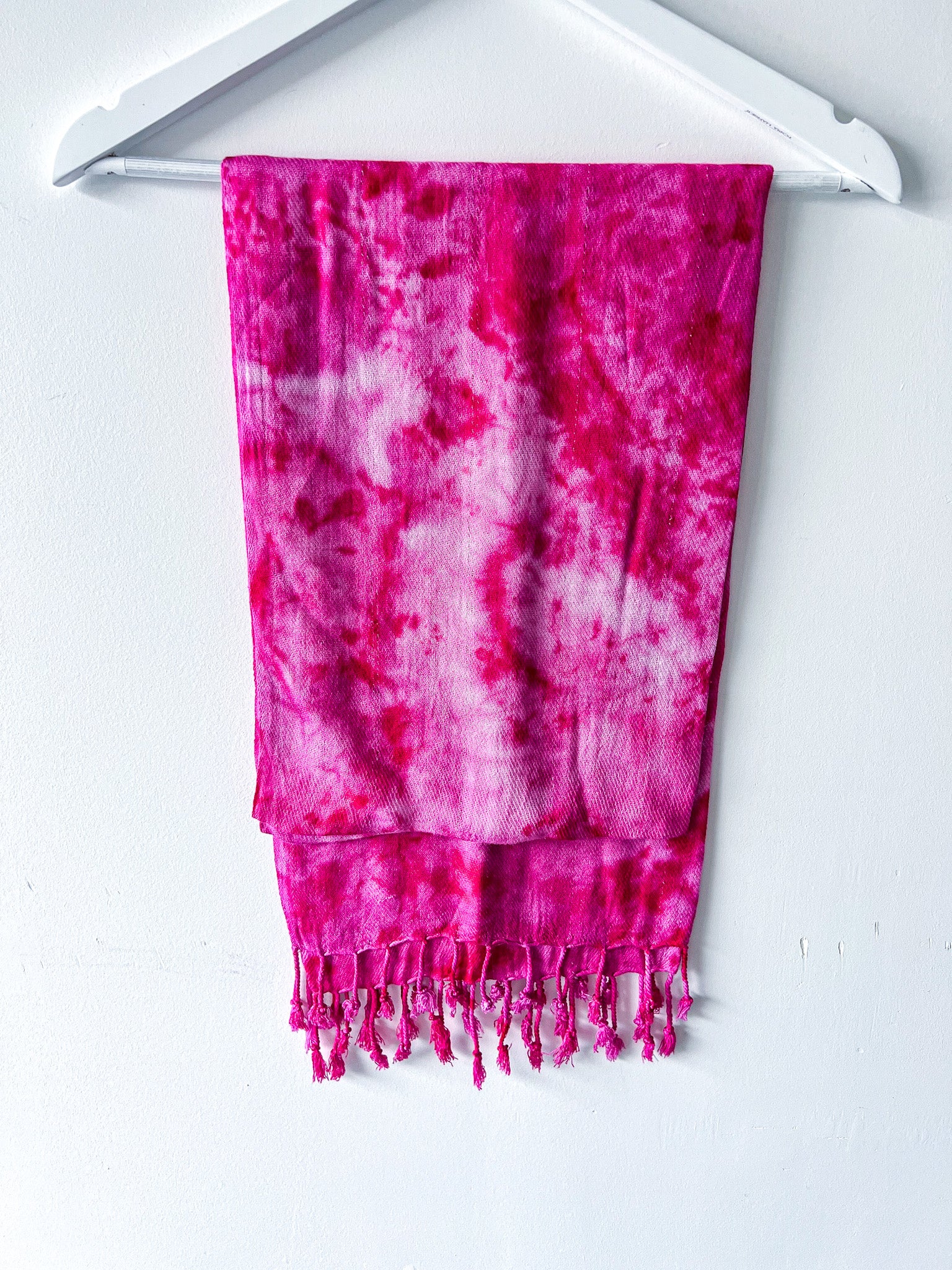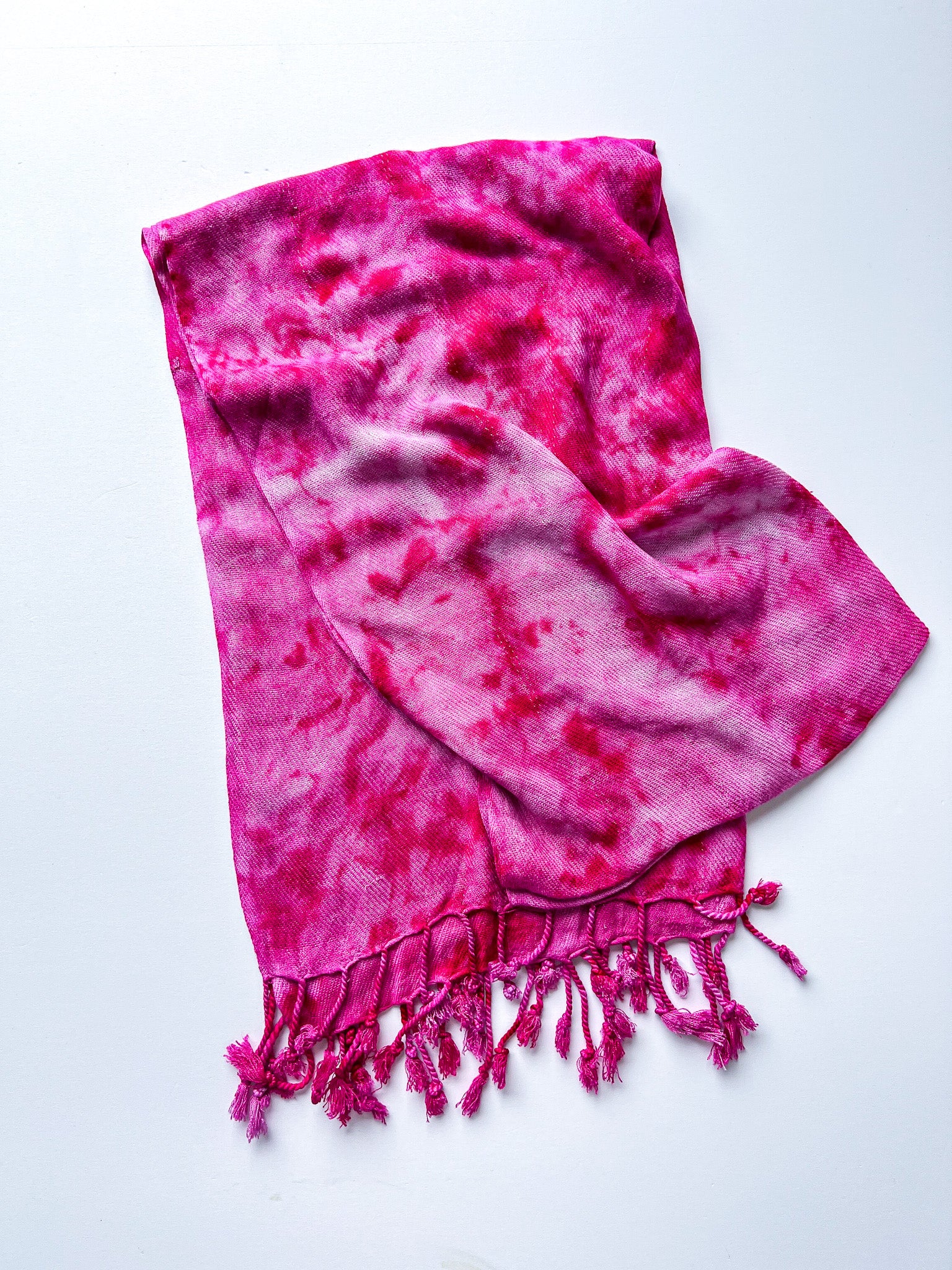 - dyed by hand in varying shades of magenta and pink